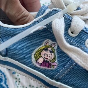 Genuine vintage little girl sneakers- collaborations with Keds and The Muppets. Adorable lace up with Miss.Piggy patches! Great for collectors and little Muppets fans! Size 7.5..