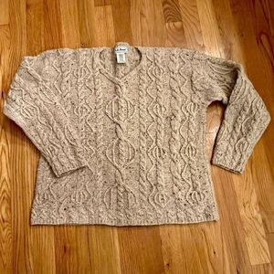 EUC Vintage Women's LL Bean Oatmeal Flecked V-Neck Cable Knit Sweater SMALL