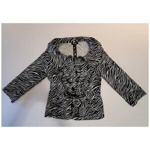 EUC Vintage Zebra Print Light Cotton Jacket 3/4 Sleeve and Cinched Waist -Size S