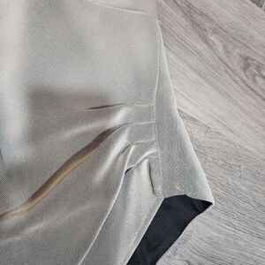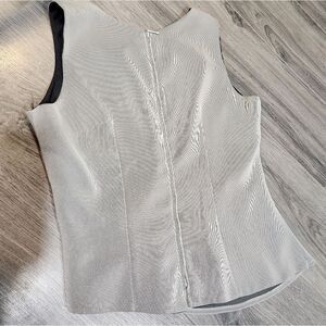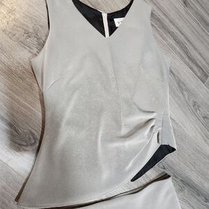 EUC Visage Gray Midi Skirt Set, skirt has hidden zipper and waist flat is 16" and 27" long. Tank has slight gather on one side and long on other. Great business set. Pit to pit is 20" and 23" long. No flaws at all. Good quality.