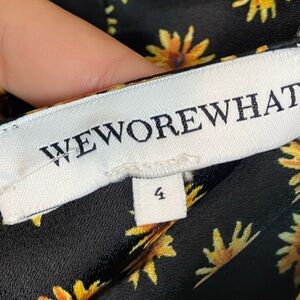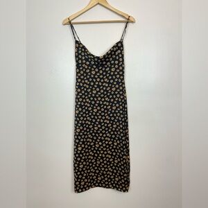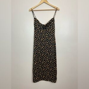EUC WEWOREWHAT COWL SATIN CHARMEUSE MIDI DRESS IN BLACK MULTI DAISY FLORAL