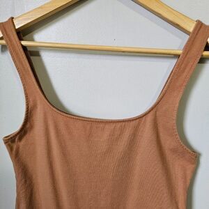 EUC WORN ONCE AMERICAN EAGLE OUTFITTERS TAN SCOOP NECK TANK BODYSUIT SZ L