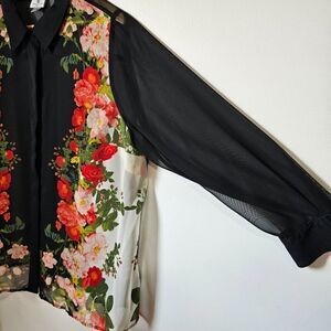 EUC WORTHINGTON WOMAN FLORAL SEMI SHEER BUTTON DOWN SHIRT LONGSLEEVES SIZE 1X