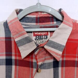 EUC WRANGLER COTTON PLAID LONG SLEEVE BUTTON DOWN SHIRT MENS XL