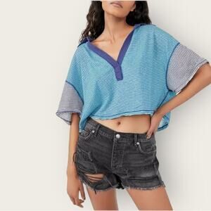 EUC | We the Free | Striped Oversized Crop Top | Blue | Small