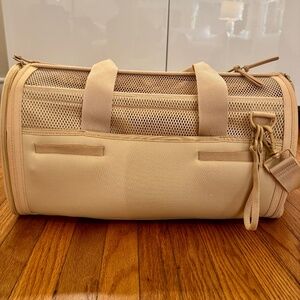 Travel together with this super comfortable, modular Travel Carrier. With breathable mesh walls and a dual use leash / shoulder strap.