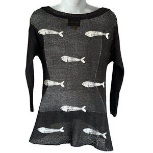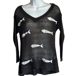EUC - Wildfox Dinner V-Neck Sweater Sequin Fish in Gray - Size XS