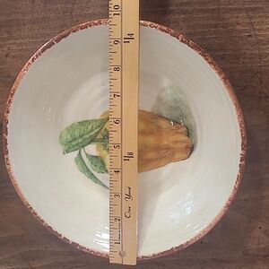 pre-loved, gently used, great condition. pre-loved, gently used, great condition. Pasta bowl from the Jardin Potager collection, feature rippled ceramic with a yellow pepper design inside, colored edging, made in Italy. No cracks, chips, stains. Check out my other listing for the Tomato bowl.