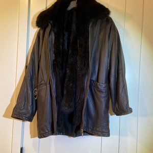 EUC Women's Andrew Marc Addition Leather and Fur Jacket with Detachable Fur Vest