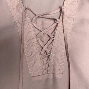 EUC Women's J. JILL Long Sleeve Pink Lace Up Shell Button Top | Size L