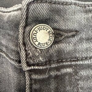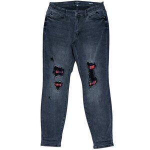 EUC Women's JUDY BLUE Rayann Buffalo Plaid Patch Jeans Faded Black | Size 14 W