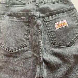 Stylish dark gray denim jeans with a unique back pocket design. Perfect for casual wear.