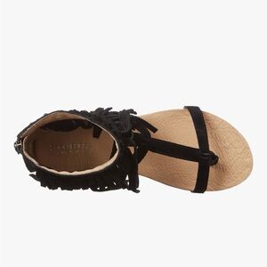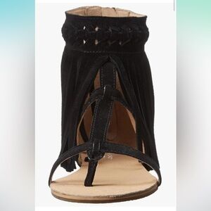 EUC size 7 Koolaburra Athena sandals,black suede fringe ankle wrap gladiator style.