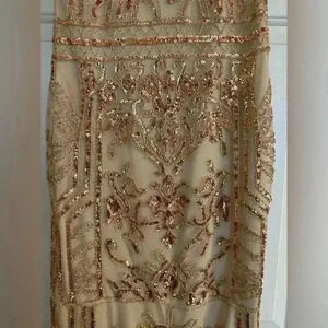EUC Women’s Lulus Dramatic Entrance Rose Gold Sequin Maxi Dress, Size M. Worn once for a wedding.