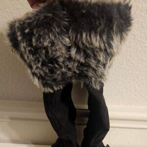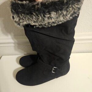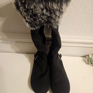 EUC Women's New Directions Black Suede Fur Trim Boot, Size 10M