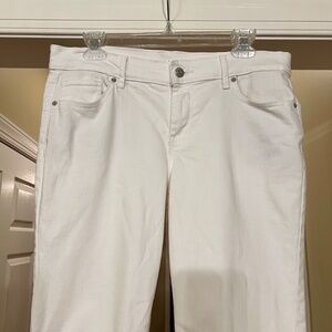 EUC Women's Old Navy Mid-Rise Flare Cropped Frayed White Jeans Size 10 Short
