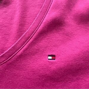 EUC Womens Pink Tommy Hilfiger V Neck T Shirt Top Size Large 🔥🏌️ (R)