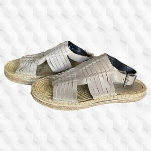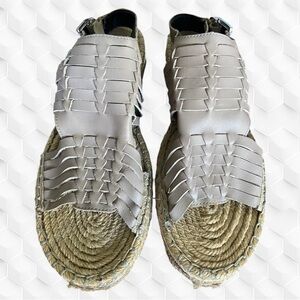 women’s beige sandals, woven leather flats, casual summer shoes, buckle strap sandals, open toe flats, comfort walking sandals, neutral color sandals, espadrille sole sandals, everyday casual shoes, breathable summer footwear, slip on woven sandals, boho chic sandals, light tan leather sandals, travel walking sandals, stylish flat sandals