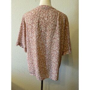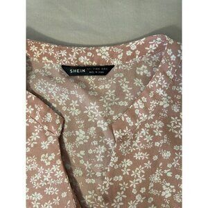 EUC Women's Shein Floral Print Dusty Rose & White Pullover Shirt Size Large