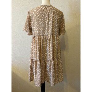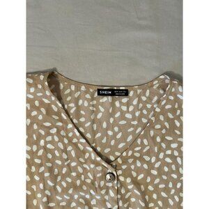 Super cute perfect for the summer SHEIN brand peasant dress size medium. This khaki & white patterned features a v neck with buttons and balloon sleeves.