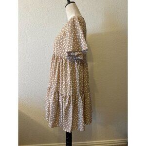 EUC Women's Shein Peasant Dress Khaki Tan White Size Medium