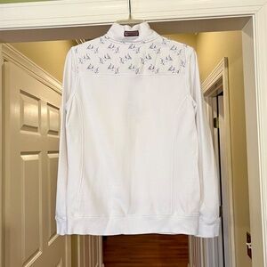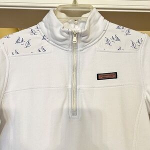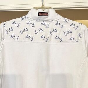 EUC Womens Vineyard Vines White Blue Sailboat Print 1/2 Zip Pullover Shirt SMALL