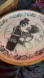 EUC Wooden Enamel Round Gothic Skeleton Bride And Groom Print Platter Pedestal
