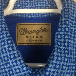 EUC Wrangler Retro Men's Diamond Floral Short Sleeve Pearl Snap Shirt size Large
