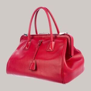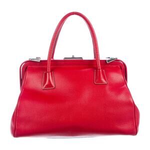 EUC Y2K PRADA Doctor Bag Red Silver Fuoco leather Tote Satchel Madras Cerniera