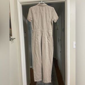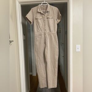 YFB Young Fabulous & Broke Denim Kahri Jumpsuit EUC Size M Tan utility jumpsuit. Pockets in front and back.