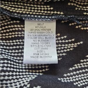 EUC Ya Los Angeles Women's Black Silk Blend Zig Zag Print Blouse Top L