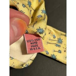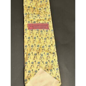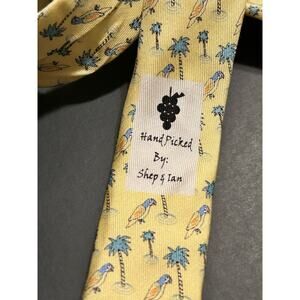 EUC Yellow Vineyard Vines Parrot and Palm Trees Silk Tie