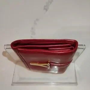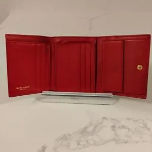 EUC YSL Yves Saint Laurent Red Leather Compact Wallet w/Gold-Toned Hardware