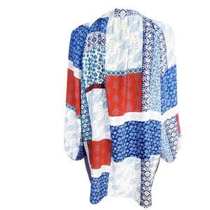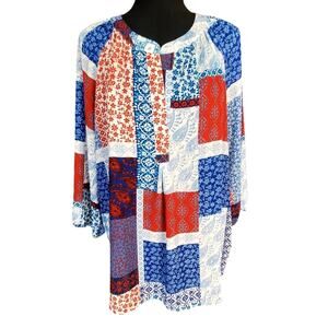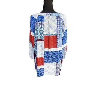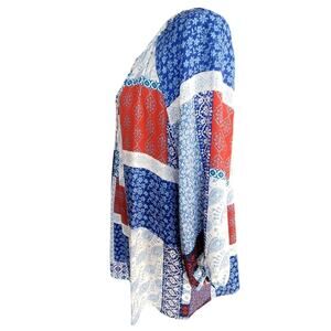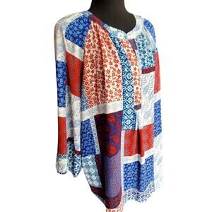 EUC Zac & Rachel Size L Women’s red & blue patchwork design. BOHO style, loose fitting and flattering for all body types.