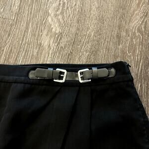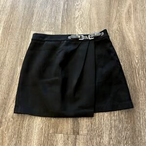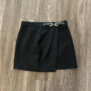 EUC Zara Black Buckle Mini Skirt Size M High Waisted Faux Wrap Style Tailored