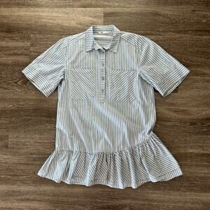 EUC Zara Blue White Striped Mini Shirtdress Size M Ruffle Hem Cotton Poplin
