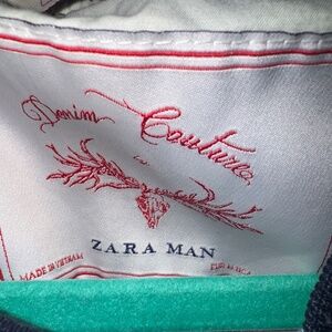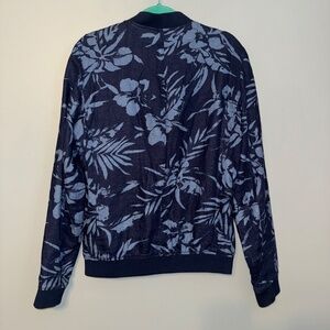EUC Zara Man Denim Couture Floral Cotton Bomber Jacket Size Medium