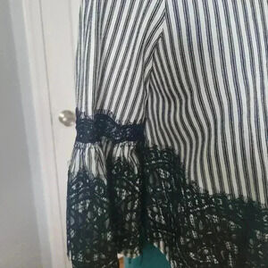EUC Zara XS Lace Bell Sleeve Striped Tie Back Blouse. Flowy fits like a size Small or a loose XS. Perfect for the office or going out. 100% cotton . Smoke free home
