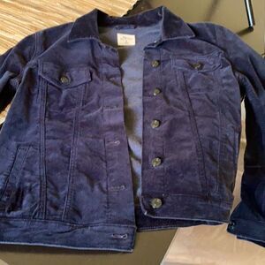 Denim jacket styling side pockets cotton / poly blend . Black velvet .