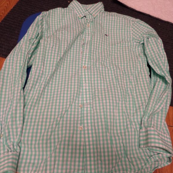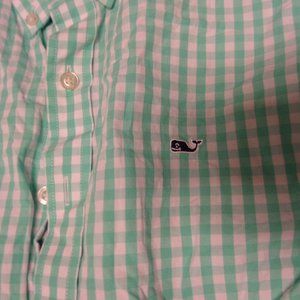 EUC boy's long sleeve button up whale vineyard vines shirt-size 18-green-white