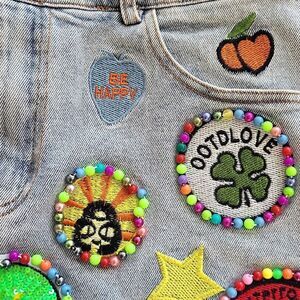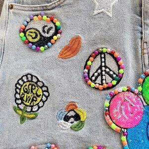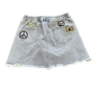 EUC fun rare La Ros women's Emoji smile butterfly love star jean skirt, M