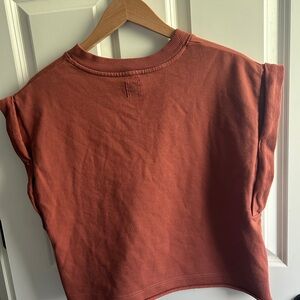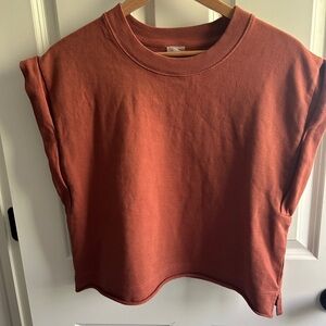 EUC like new Calia extended shoulder size M Women's Rust cuffed Sleeveless Top. Gorgeous rust orange color. Nice weight. Comfy. Could be dressed up or down. Athleisure. 100% cotton. Could be layered well.