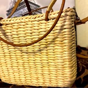 EUC raffia embossed purse with tropical picture scene clean throughout zipper close