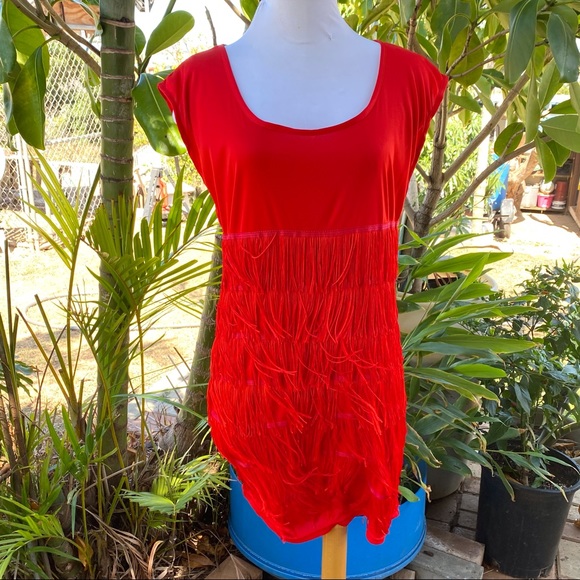 EUC red tasseled go go dress no tag or size very well made dress has stretch