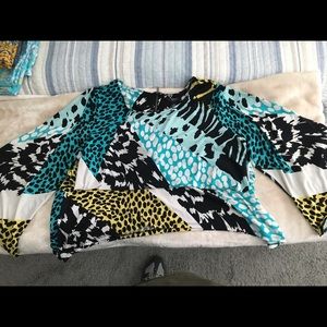 Excellent used condition Alfani blouse. This is a statement top, flows very nicely and goes so well to dress up black slacks.