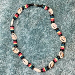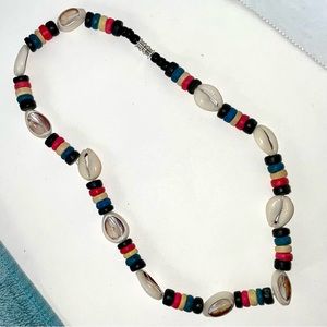 EUC vintage Reggae-style cowrie shell & wooden bead handmade unisex necklace