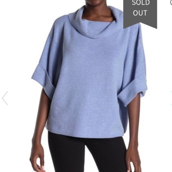 EUC525 America blue cropped sweater statement neckline short sleeves cuffed EUC Scandigirl layering Scandi oversized cowl dolman sleeve oversized