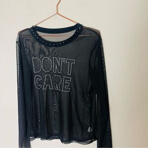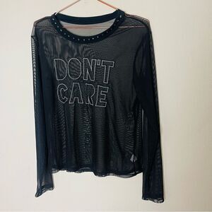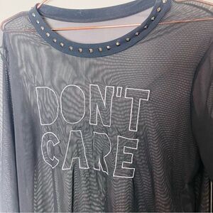 EUC ANGL Festival Black Mesh Graphic Don’t Care Top Medium