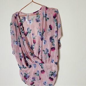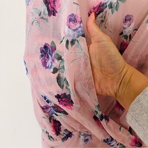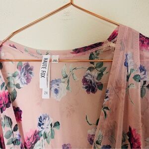 EUC ANGL Haute Fox Pink Floral Mesh Blouse 2X