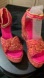 Colorful/Woven/cotton.Pink leather and natural raffia.